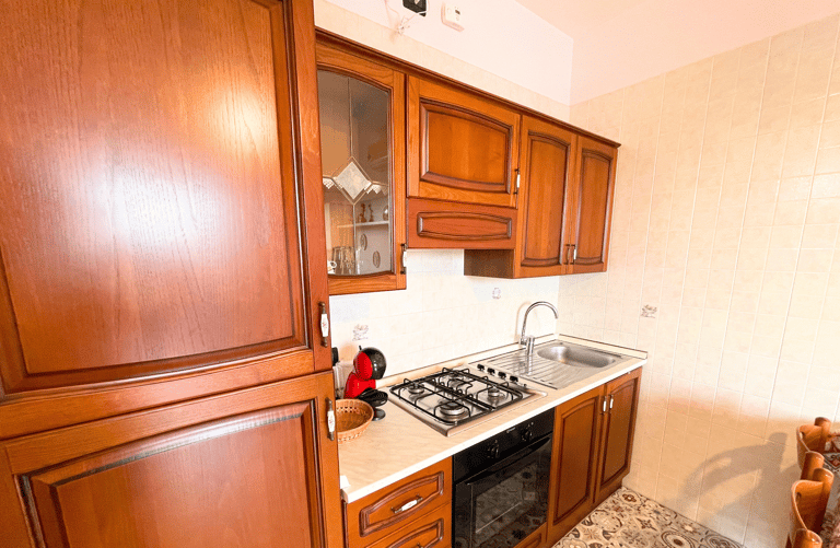 L’appartamento, situato al primo piano di un condominio tranquillo e ben curato, si presenta come una soluzione accogliente e funzionale. Pur essendo sprovvisto di ascensore, offre spazi ben distribuiti e un’ottima vivibilità. L’ingresso si apre su un ampio e luminoso open space, composto da soggiorno e cucina a vista, con accesso diretto a un terrazzo esterno ideale per pranzi e cene all’aperto.