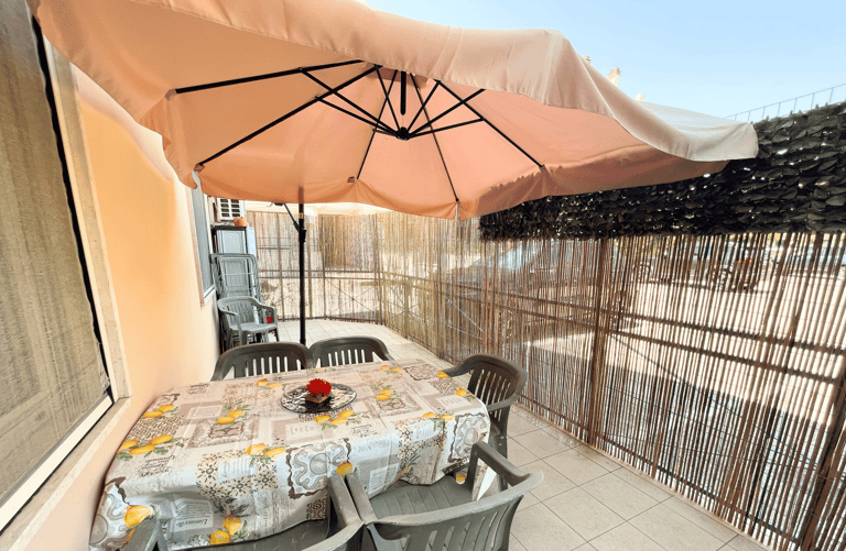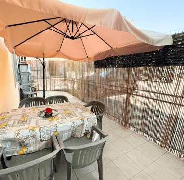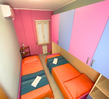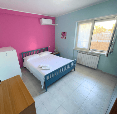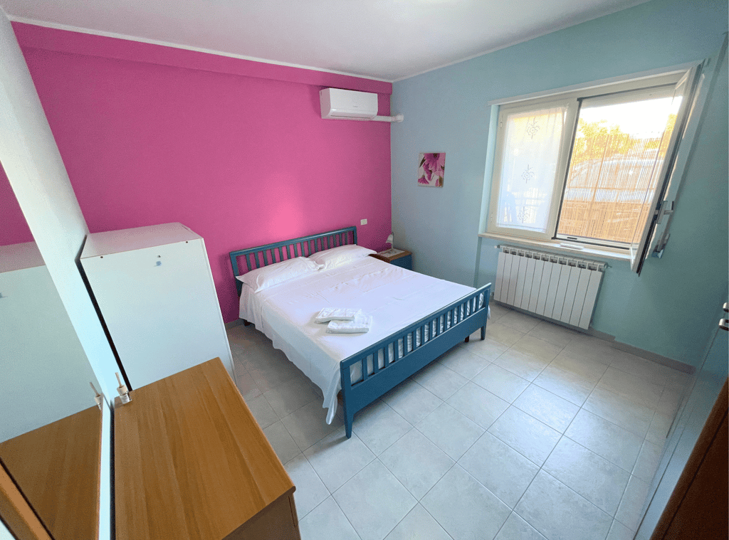 L'appartamento dispone di un ampio spazio esterno dove potrai mangiare beneficiando della brezza di mare. Internamente trovai un open-space con cucina e soggiorno. La cucina dispone di tutto il necessario per preparare dei ricchi pranzi e cene, inoltre il forno e la macchinetta del caffè aggiungono valore al tuo soggiorno. Nella zona giorno è presente la televisione, l'accesso verso lo spazio esterno e un divano letto ideale per 2 persone. Accedendo alla zona notte, subito sulla destra è presente la prima camera da letto con 2 letti singoli. In successione alla prima camera da letto troviamo la camera matrimoniale con un letto matrimoniale e il bagno con doccia. La casa dispone di lavatrice, asse da stiro, ferro da stiro, phone per i capelli, lavandino esterno e vari armadi in cui collocare i propri indumenti. L'aria condizionata è presente in tutti gli ambienti.